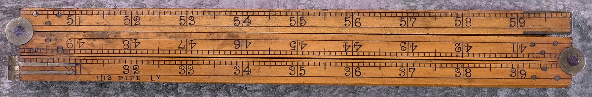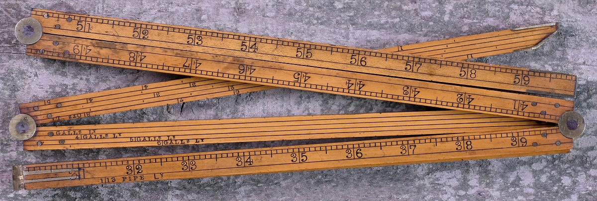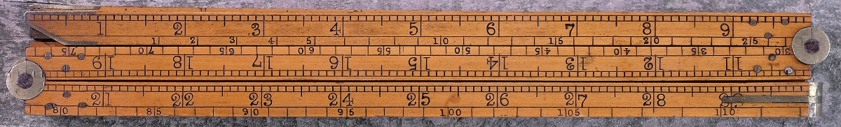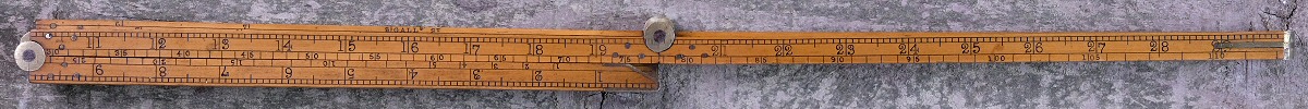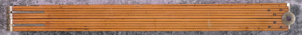 The rod has a five-fold structure which when fully open is 60" long. It has a square cross section and all four sides provide measuring information.